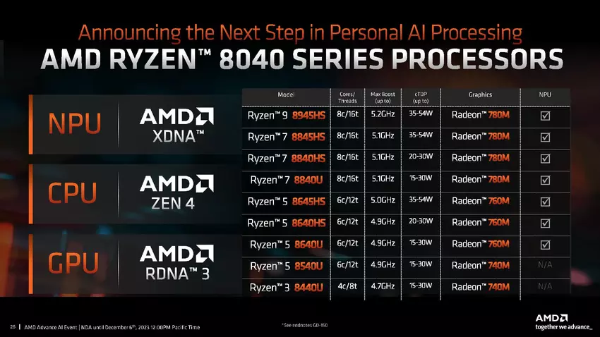 AMD kündigte überraschend Ryzen 8040 Mobilprozessoren mit Zen 4 Kernen, RDNA 3 Grafik und XDNA NPU Neural Chip an