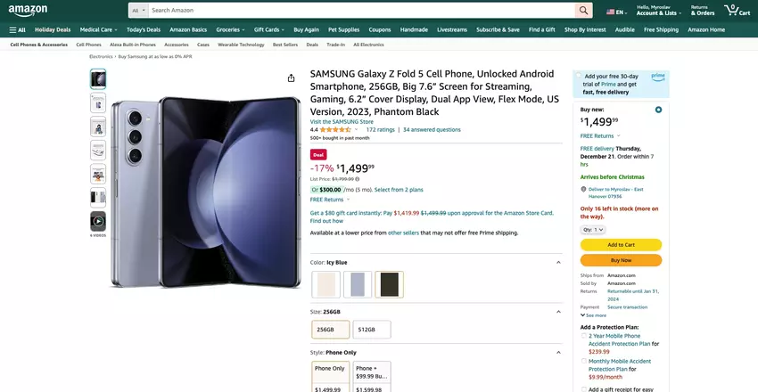 Rabatt bis zu $370: Samsung Galaxy Fold 5 ist auf Amazon zu einem Sonderpreis erhältlich