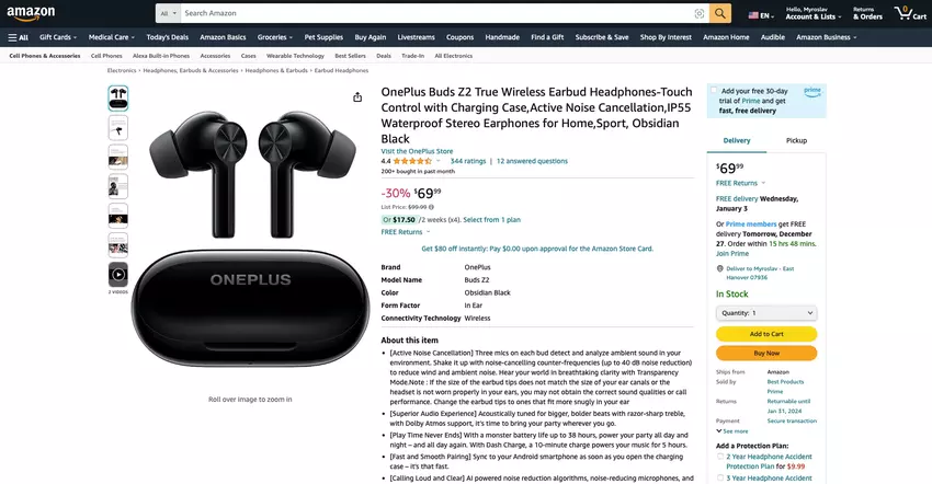 OnePlus Buds Z2 mit ANC, Bluetooth 5.2 und Dolby Atmos Unterstützung ist bei Amazon für $69 ($30 Rabatt) erhältlich.