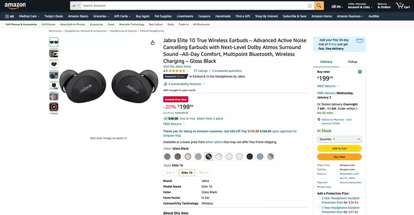 Jabra Elite 10 bei Amazon: TWS-Kopfhörer mit ANC und Spatial Sound für $50 Rabatt
