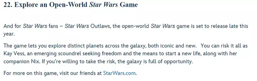 Das Actionspiel Star Wars Outlaws von Ubisoft ist eines der interessantesten Spiele, die für 2023 angekündigt wurden. Der Entwickler sorgte für eine beeindruckende Gameplay-Demonstration, aber das Veröffentlichungsdatum blieb ungenannt.