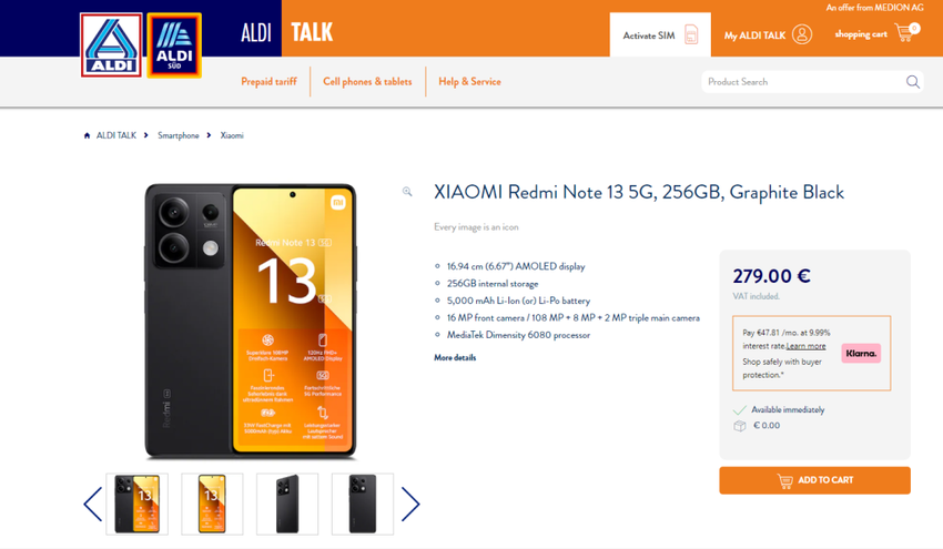 Der virtuelle Betreiber Aldi Talk hat den europäischen Preis für das Redmi Note 13 5G bekannt gegeben