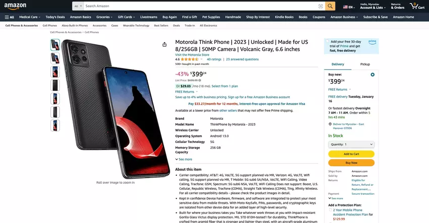 ThinkPhone von Motorola kann auf Amazon für einen ermäßigten Preis von 300 $ gekauft werden