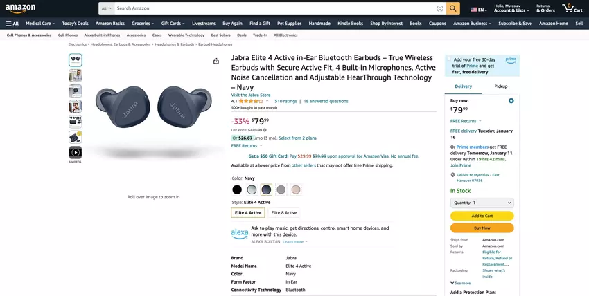 Jabra Elite 4 Active mit ANC, bis zu 28 Stunden Akkulaufzeit und Spotify Tap ist bei Amazon für $40 weniger erhältlich