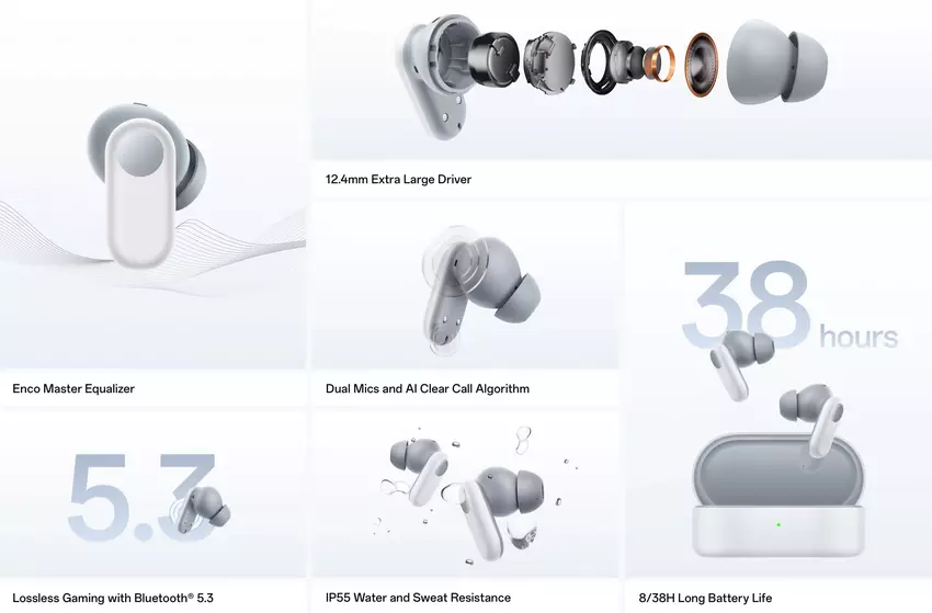 Das Modell verfügt über eine Vakuumkonstruktion, IP55-Schutz und 12,4 mm Treiber. Die Kopfhörer unterstützen Dolby Atmos sowie Dirac Audio Tuner. Das Gerät verfügt über zwei Mikrofone, die KI-Algorithmen verwenden, um Fremdgeräusche während Gesprächen zu eliminieren. Die Kopfhörer unterstützen Bluetooth 5.3 und können mit zwei Geräten gleichzeitig verbunden werden. Die Akkulaufzeit beträgt bis zu 8 Stunden. Mit einer Ladehülle kann diese Zeit auf 38 Stunden erhöht werden.