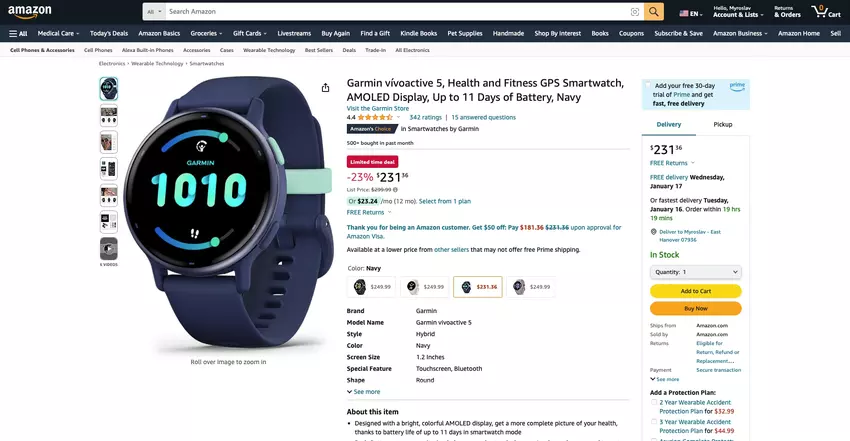 Garmin Vivoactive 5 auf Amazon: Smartwatch für den Sport mit 68 Dollar Rabatt
