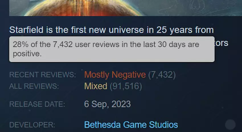 In der Zwischenzeit ist die Bewertung von Starfield auf Steam auf einen Rekordwert von 28% positivem Feedback gesunken, was die Notwendigkeit der dringenden Arbeit an den Fehlern des Spiels eindrucksvoll bestätigt.