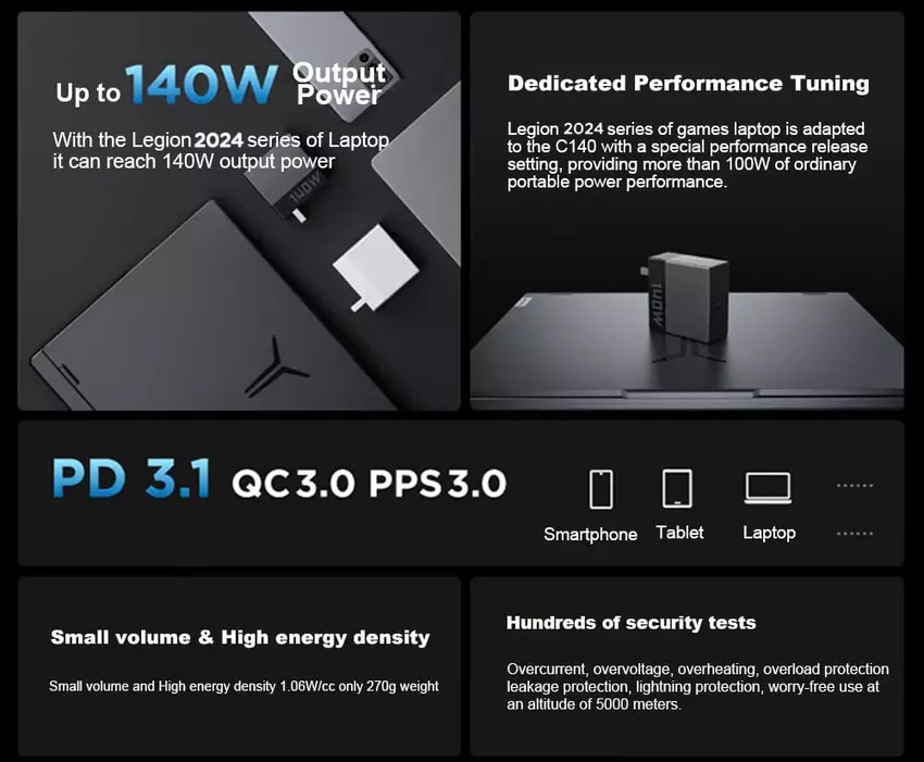 Lenovo hat in China ein neues Zubehör angekündigt - das GaN-Ladegerät Legion C140 2024.
