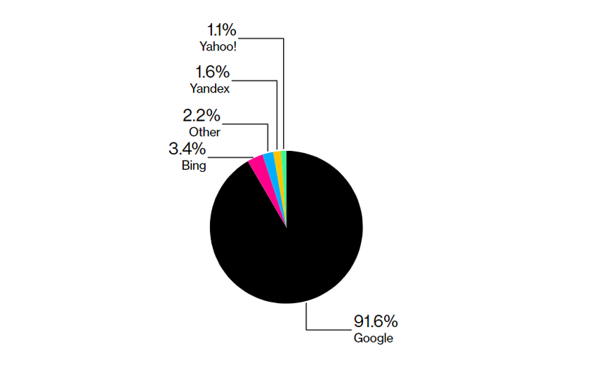 Weltweiter Suchmaschinenanteil laut StatCounter-Daten