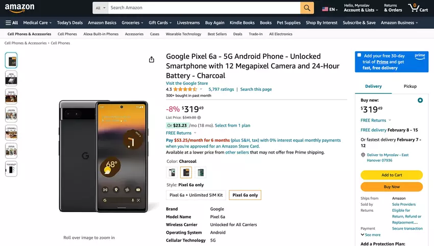 Google Pixel 6a kann auf Amazon für weniger als $330 gekauft werden