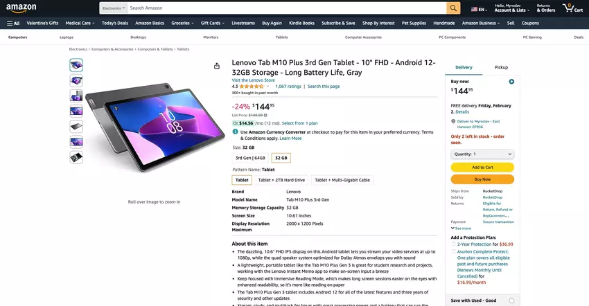 - Lenovo Tab M10 Plus (3rd Gen), 32 GB - $246.35.