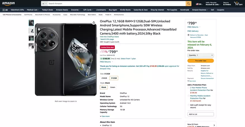OnePlus 12 mit 512 GB Speicherplatz kann bei Amazon mit einem Rabatt von $100 vorbestellt werden