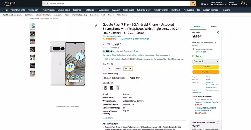 Google Pixel 7 Pro mit 512 GB Speicherplatz kann bei Amazon mit einem Rabatt von $400 gekauft werden