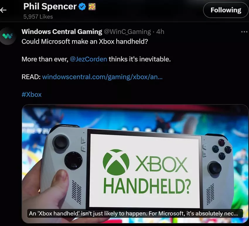 Solche Informationen hat in den Medien vor erschienen, aber Jez Corden's Post mit einem Link zu dem Artikel wurde von der Spitze der Xbox Phil Spencer gefallen.
