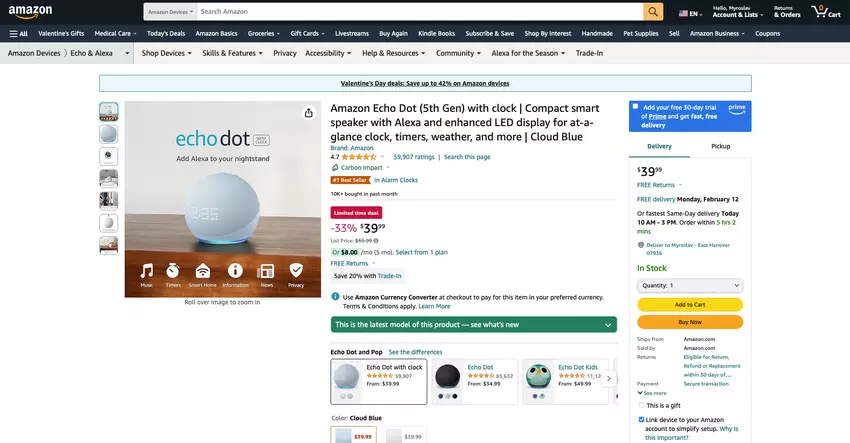 Amazon hat den Preis für die 5. Generation des intelligenten Lautsprechers Echo Dot gesenkt.