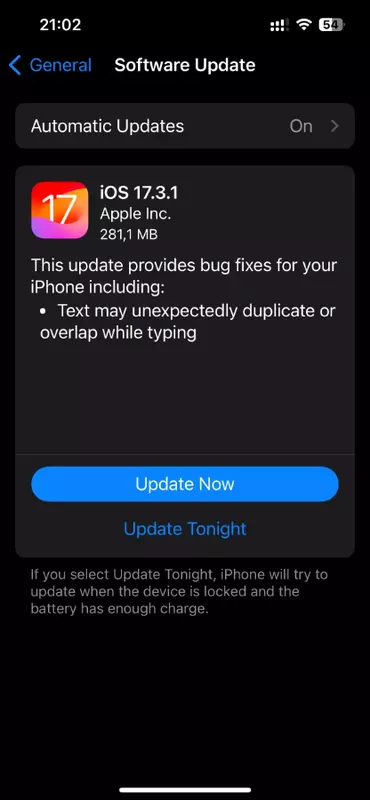 Das Update trägt die Nummer iOS 17.3.1 und wiegt rund 300 MB. Es handelt sich um eine kleinere Version des Systems, in der die Entwickler an Fehlern gearbeitet haben. So hat Apple beispielsweise ein Problem behoben, das dazu führen konnte, dass sich Text beim Tippen unerwartet dupliziert oder überschneidet.