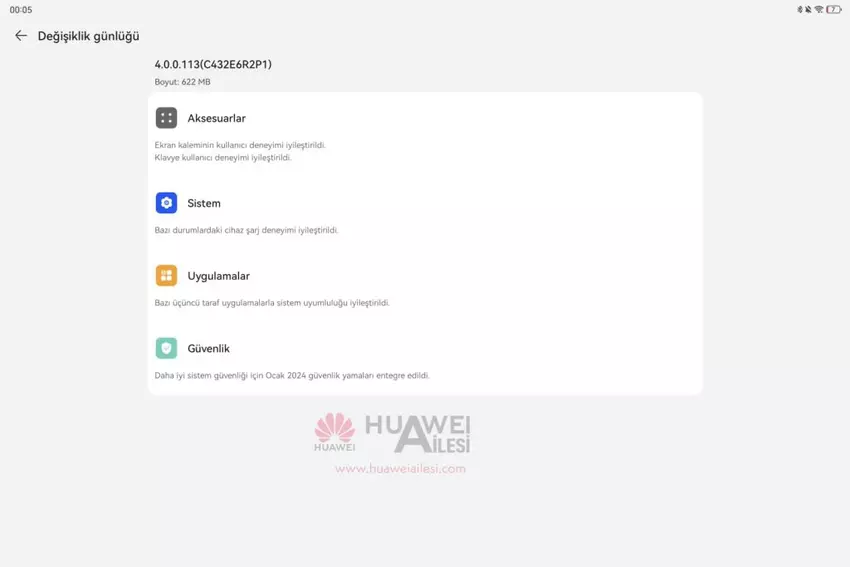 Was die Liste der Änderungen betrifft, so enthält sie verbesserte Sicherheit. Darüber hinaus hat Huawei das System, das Aufladen des Geräts sowie den Betrieb von Zubehör (Stift und Tastatur) optimiert.