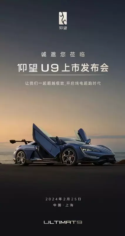 Das Modell wird den Namen U9 (Ultimat 9) tragen. Laut der offiziellen Einladung des Herstellers wird das Elektroauto in einer Woche, am 25. Februar, auf einer Veranstaltung in China vorgestellt.