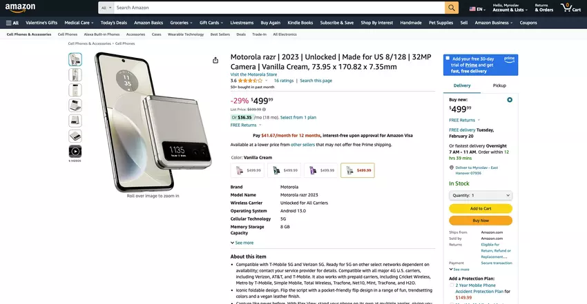 Wir sprechen über das Modell Razr (2023). Das Gerät kostet jetzt check price on amazon. Das Smartphone ist in vier Farben erhältlich: Sage Green, Cherry Blossom, Summer Lilac und Vanilla Cream.