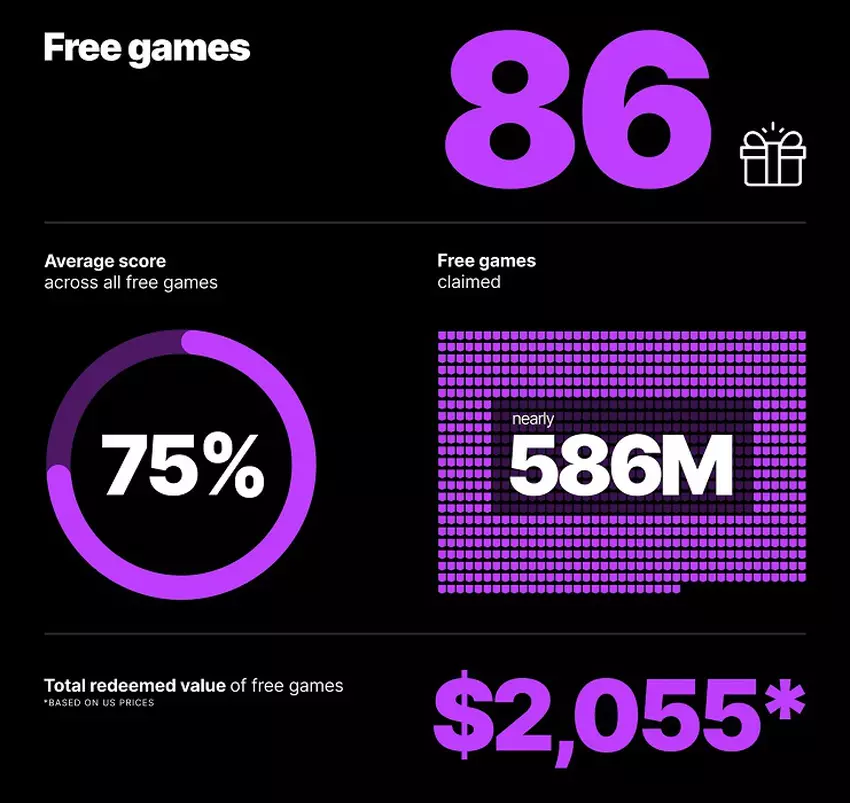 Die Popularität von EGS wächst nicht zuletzt dank der wöchentlichen Werbegeschenke. Im vergangenen Jahr verschenkte der Shop 86 Spiele im Wert von 2.000 Dollar pro Nutzer. Insgesamt wurden 580 Millionen Kopien von Gratisspielen aktiviert.
