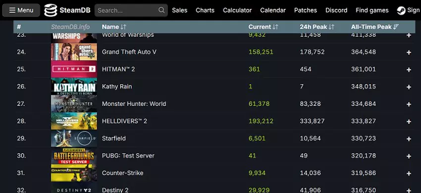 Im Moment liegt Helldivers 2 auf Platz 28 der Rangliste der Spiele nach der Anzahl der gleichzeitigen Spieler.