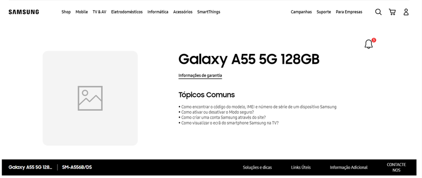 Auf der portugiesischen offiziellen Website von Samsung erschien eine Seite mit dem noch nicht angekündigten Smartphone Samsung Galaxy A55. Die Daten auf der Seite sagen uns nicht viel, außer der Modellnummer SM-A556B und der Tatsache, dass Käufer des Galaxy A55 in Europa, oder zumindest in einigen europäischen Ländern, zwischen 128 GB und 256 GB Speicherplatz wählen können.