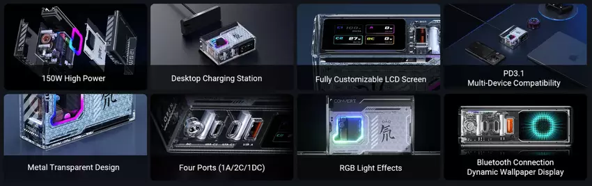 Die Neuheit verfügt über Bluetooth, dank dem Sie das Ladegerät mit Ihrem Smartphone verbinden und die Hintergrundbeleuchtung über die Goper-App einstellen können. Das Gerät unterstützt verschiedene Schutzprotokolle und eine maximale Ausgangsleistung von 150 W. Das Gerät wird mit USB-C-auf-USB-C- und DC-auf-DC-Kabeln geliefert.