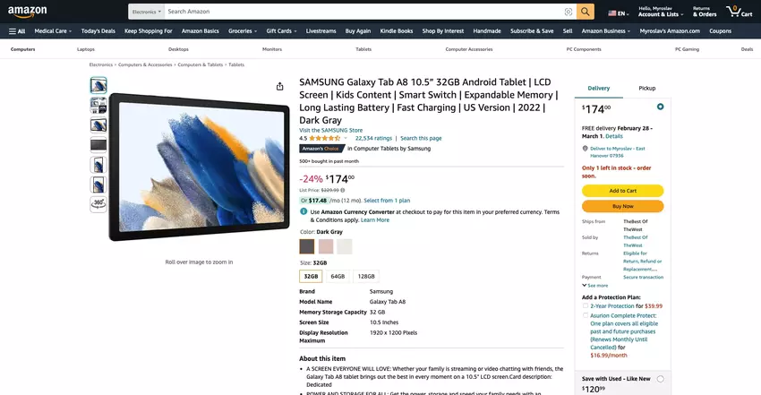 Samsung Galaxy Tab A8 kann auf Amazon für weniger als $180 gekauft werden