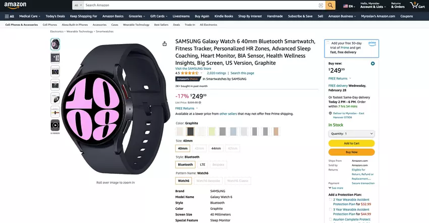 Samsung Galaxy Watch 6 kann auf Amazon mit einem Rabatt von bis zu $179 gekauft werden