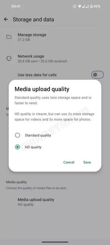 Aber dieses neue Beta-Update enthält einen weiteren speziellen Abschnitt namens Medienqualität, der es den Nutzern ermöglicht, die Qualität des Medien-Uploads für jedes neue Bild und Video zu ändern. Standardmäßig ist die Qualität auf Standard eingestellt, was Speicherplatz spart. Wenn Sie sich jedoch keine Sorgen um Speicherplatz machen und alle Fotos und Videos in HD-Qualität senden möchten, erspart Ihnen diese Option, jedes Mal auf das HD-Symbol auf dem Bildschirm des Medieneditors klicken zu müssen.