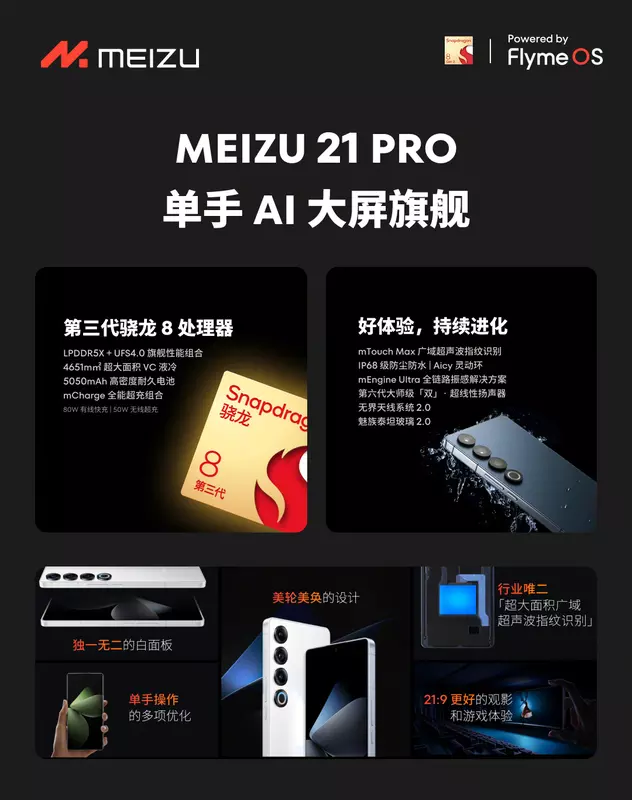 Meizu 21 Pro: 120Hz LTPO OLED-Display, Snapdragon 8 Gen 3 Chip, RGB-Ring und 5050mAh Akku mit 80W Aufladung ab $695