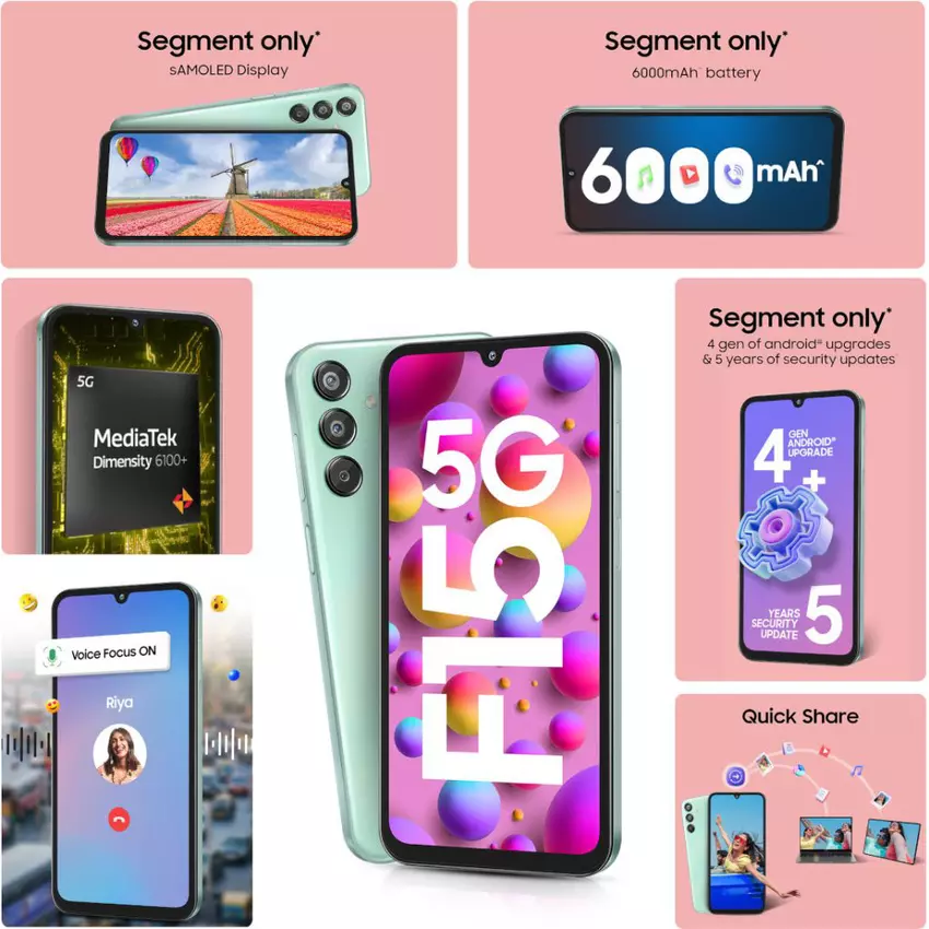 Samsung Galaxy F15 5G: 90Hz AMOLED-Display, Dimensity 6100+ Chip, 6000mAh Akku und 5 Jahre Updates
