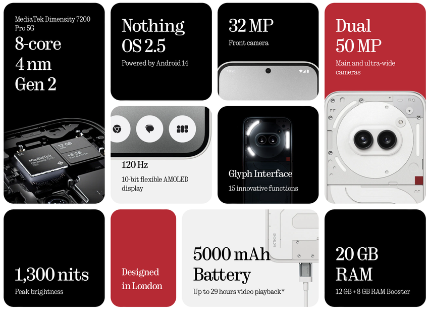 Nothing Phone (2a): 120Hz AMOLED-Display, Dimensity 7200 Pro Chip, Glyph Hintergrundbeleuchtung und Preis ab 329 Euro