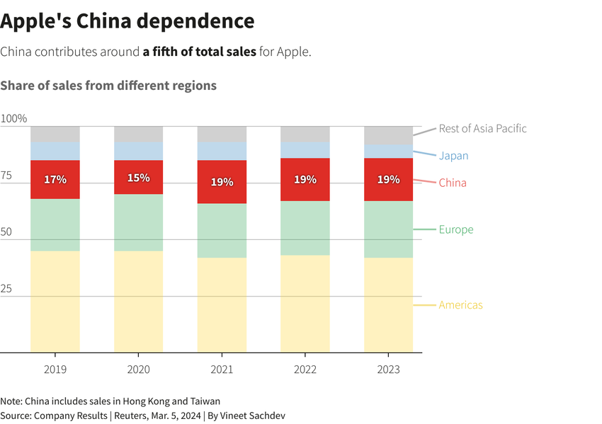 Apple hat in den ersten sechs Wochen des Jahres 2024 24 % der iPhone-Verkäufe verloren, weil die Konkurrenz aus dem eigenen Land, darunter Huawei, zugenommen hat.