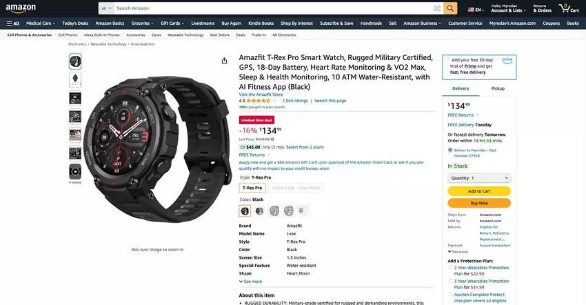 Der Rabatt beträgt 25 Dollar: Amazfit T-Rex Pro mit Schutzhülle und bis zu 18 Tagen Akkulaufzeit ist bei Amazon zum Aktionspreis erhältlich