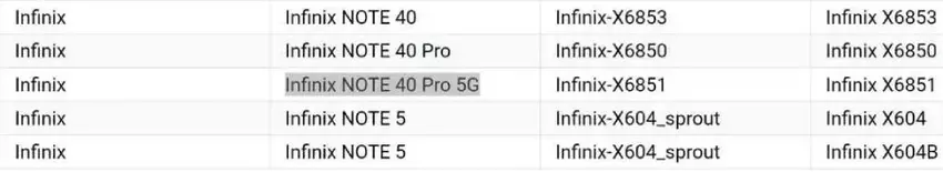 Infinix Note 40 Pro 5G erschien in Google Play Console Auflistung vor der Markteinführung