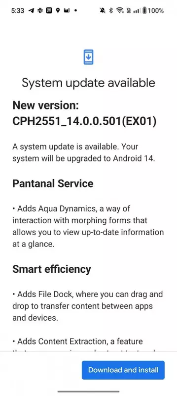 Wie unsere Kollegen von 9to5Google berichten, wurde das Update in den USA veröffentlicht. Die Firmware trägt die Build-Nummer CPH2551_14.0.0.0.501(EX01) und wiegt 2,54 GB. Das System wird bereits in Wellen auf die Geräte ausgerollt. Sie können die OTA-Verfügbarkeit in den Einstellungen des Geräts überprüfen.