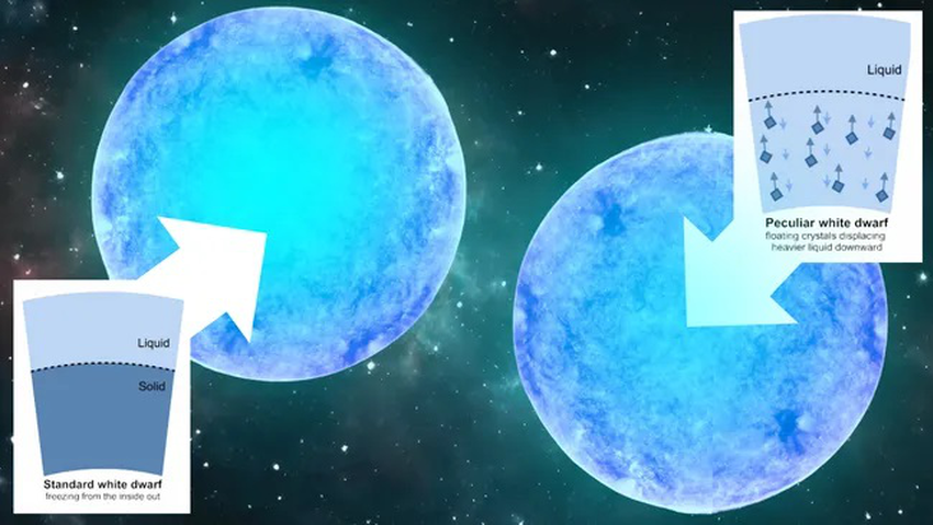 Wenn feste Materie nach oben steigt, verdrängt sie flüssige Materie, die nach unten wandert, so die Experten. Wenn sich das schwerere Material in Richtung des Herzens der Weißen Zwerge bewegt, wird Gravitationsenergie freigesetzt. Diese Energie kann in Wärme umgewandelt werden, wodurch der Abkühlungsprozess für Milliarden von Jahren gestoppt wird.