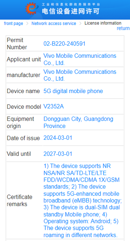 Das Smartphone mit der Modellnummer V2352A ist in der Datenbank der chinesischen Zertifizierungsbehörde MIIT aufgetaucht. Das heißt, das Gerät ist bereits bereit für die Präsentation. Höchstwahrscheinlich wird es im April vorgestellt werden.