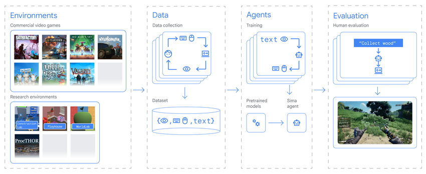Google DeepMind hat einen neuen Agenten mit künstlicher Intelligenz namens SIMA (Scalable Instructable Multiworld Agent) vorgestellt, der auf der Grundlage von Anweisungen in natürlicher Sprache Aufgaben in 3D-Spielen verstehen und ausführen kann.