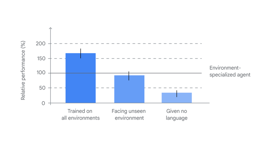 In Tests hat SIMA bewiesen, dass es in der Lage ist, seine Erfahrungen aus einigen Spielen effektiv auf andere, unbekannte Umgebungen zu verallgemeinern. Seine Leistung in unbekannten Spielen war fast die gleiche wie die eines Agenten, der speziell für diese Spiele trainiert wurde.