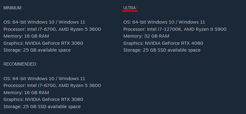 Wir sind daran gewöhnt, dass Steam zwei Kategorien von Systemanforderungen auf der Seite jedes Spiels hat: Minimum und empfohlen. Das ist einfach, aber informativ, aber zum ersten Mal ist eine dritte Kategorie, Ultra, erschienen.
