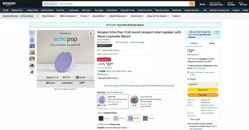 Amazon hat den Preis des intelligenten Lautsprechers Echo Pop zu Ehren des Big Spring Deal Sale gesenkt.
