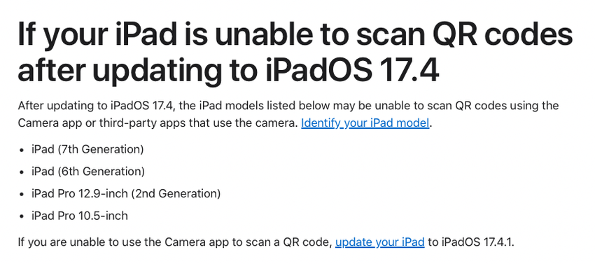 Apple hat mit dem Update auf iPadOS 17.4.1 den Fehler beim Scannen von QR-Codes im iPad behoben