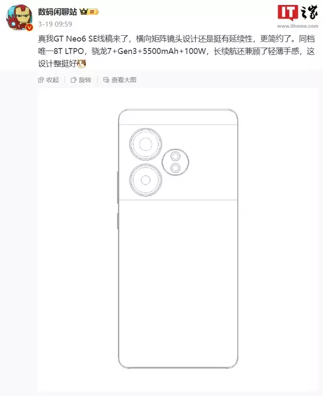 Kürzlich wurde auch ein Bild von einem Whistleblower der Digital Chat Station online veröffentlicht, das eine Skizze des kommenden GT Neo 6 SE zeigt. Diese Skizze des Smartphones ähnelt im Design völlig dem angeblichen GT Neo 6 SE, das auf dem Bild zu sehen ist. Der Whistleblower sagte auch, dass das Gerät leicht und dünn sein wird, was auch auf dem Foto zu sehen ist.