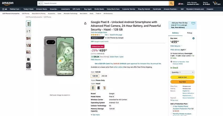 - Pixel 8, 128GB (Hazel, Obsidian, Rose) - $589.97 $699.00, -16%00 $589.97 $699.00, -16%.