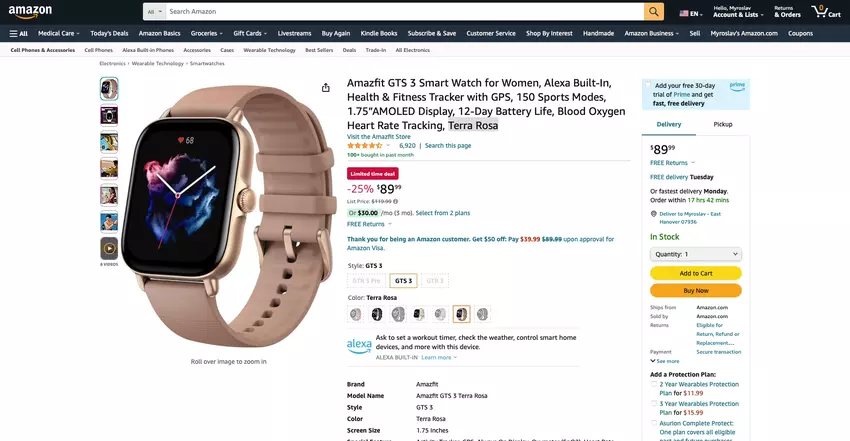 Zeitlich begrenztes Angebot: Amazfit GTS 3 bei Amazon mit $30 Rabatt