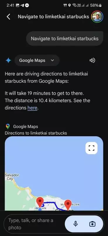 Dieses Update vermeidet die Unannehmlichkeit, nach einer kurzen Routenübersicht in Gemini manuell auf einen Link zu klicken, um eine Wegbeschreibung zu erhalten. Gemini startet nun automatisch die Google Maps-Navigation, nachdem ein kurzer Überblick über die Route, die Zeit und die Entfernung gegeben wurde.