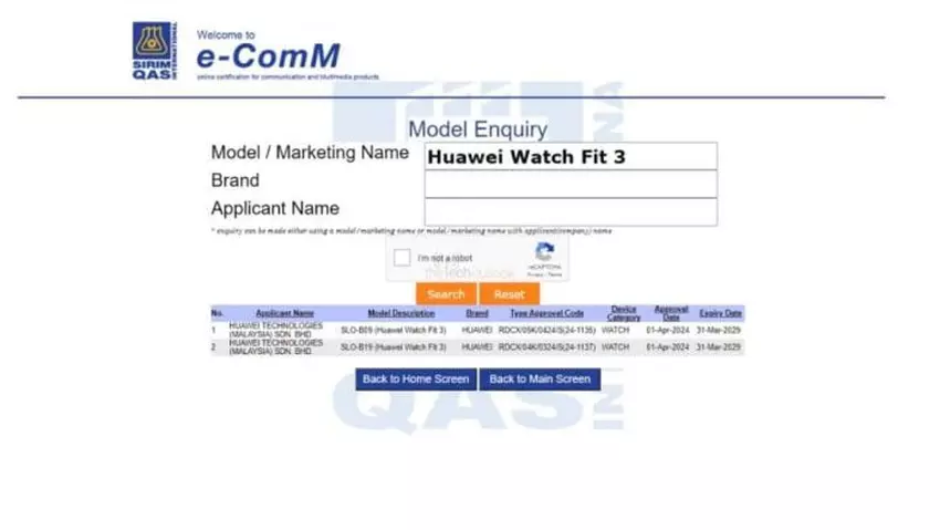Die Rede ist von dem Modell Huawei Watch Fit 3. Die Neuheit wurde in der Datenbank der malaysischen Zertifizierungsagentur SIRIM entdeckt. Das Gerät läuft unter den Modellnummern SLO-B19 und SLO-B09.
