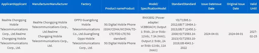 Die Rede ist von dem Modell realme GT Neo 6. Das Gerät läuft unter der Modellnummer RMX3852. Laut den Dokumenten wird die Neuheit mit 120W Schnellladeunterstützung kommen.